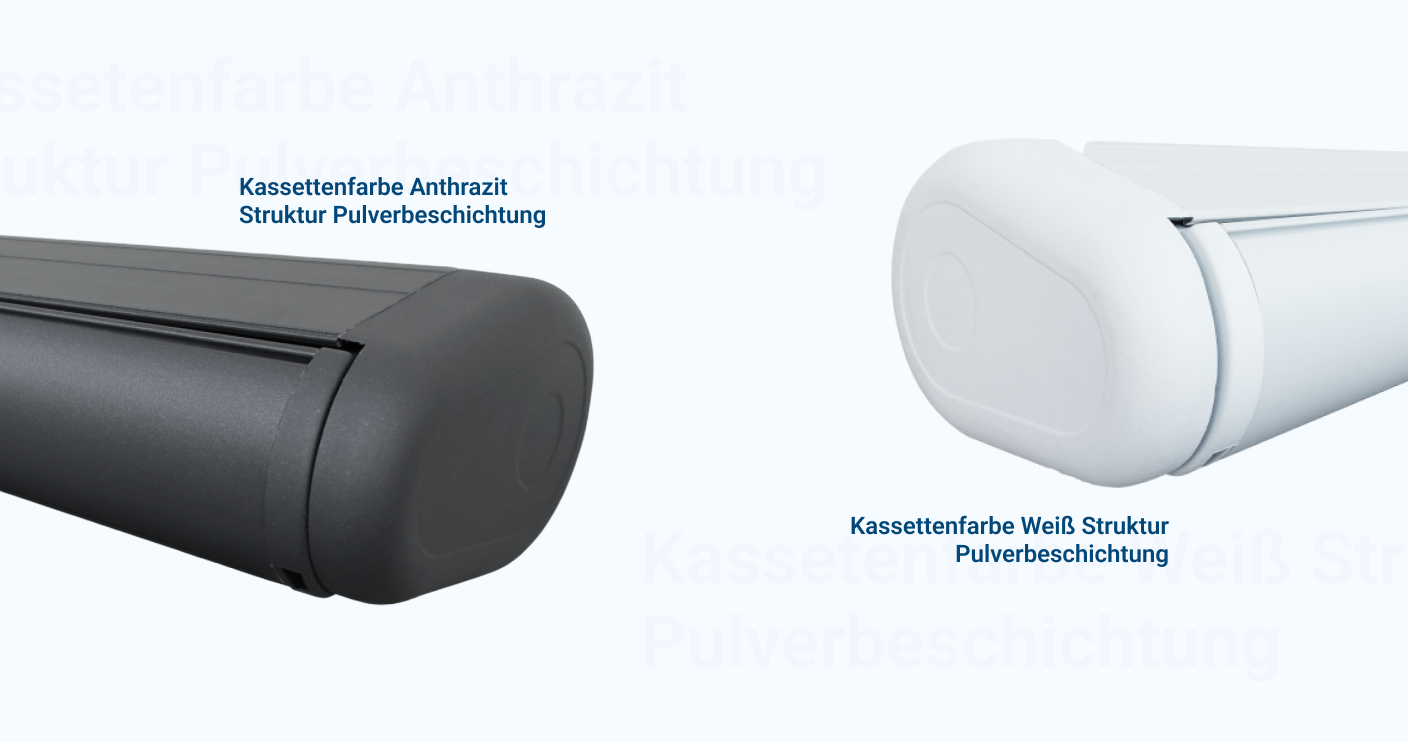 Die hochwertige Pulverbeschichtung sorgt für eine langlebige Erfahrung mit der Markise. Es dient nicht nur einer optischen Verbesserung durch feine Spezial-Partikel, die einen besonderen Glitzereffekt ermöglichen, sondern schützt auch optimal gegen Korrosion und Witterungseinflüssen wie, UV-Strahlen und Emission. Zudem ist das Material sehr resistent gegen Schmutz und Verwitterung.